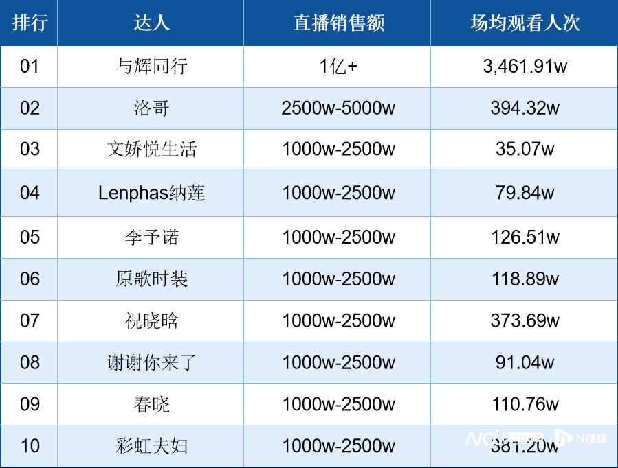 抖音12月18日直播带货日榜:与辉同行超1亿销售额继续坐稳单日榜单头把交椅;洛哥2500万+销售额位列第二,文娇悦生活1000万+销售额位列第三。