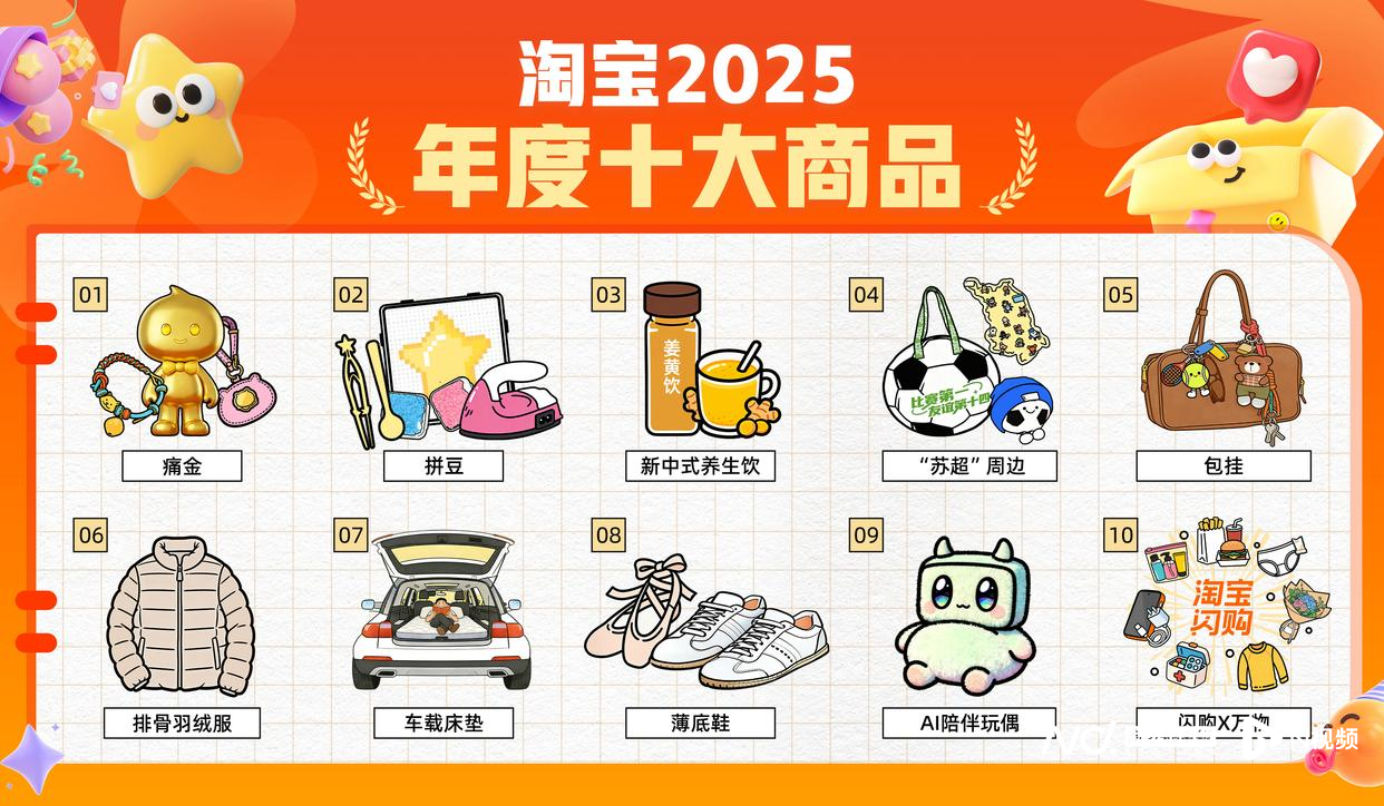 1、淘宝2025年度十大商品出炉