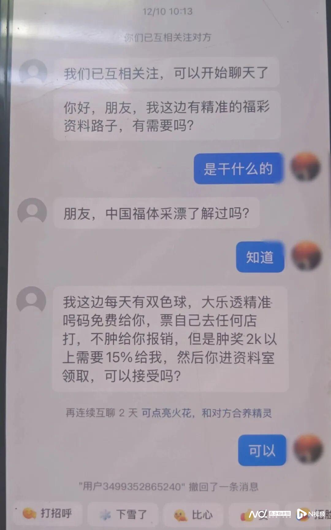 近日,湖南一男人在网上购买“福利彩票”时,添加了一陌生人好友。对方以购买福利彩票为由,引导其下载名为“乐透福彩”的APP。在对方的指导下,李某在APP客服处购买了一注彩票。事后客服告知其中奖并为其发放了中奖的小额现金。