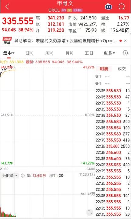 北京时间周三晚,甲骨文美股开盘直线拉升,大涨超40%,创下该公司自1999年以来的最大单日涨幅。